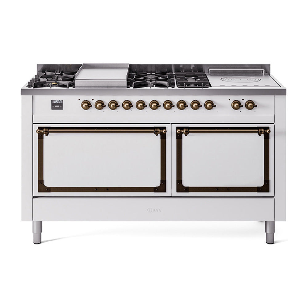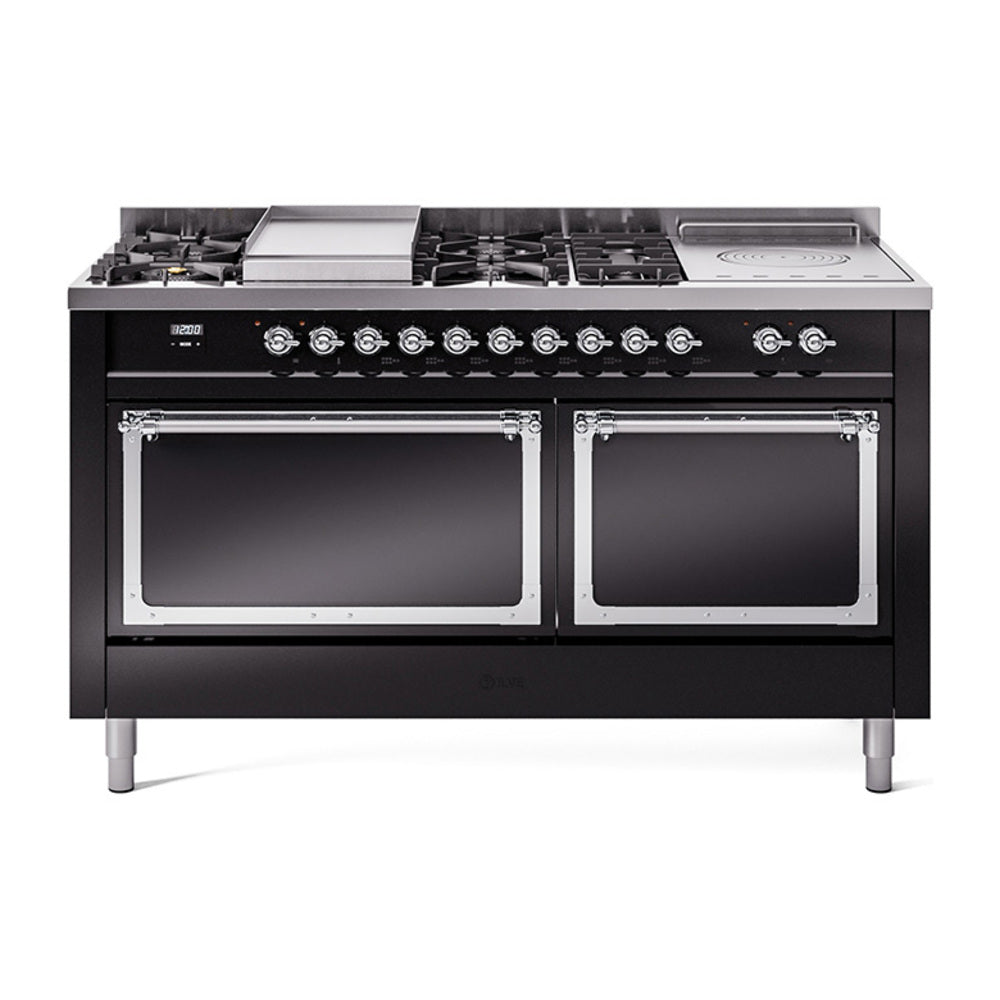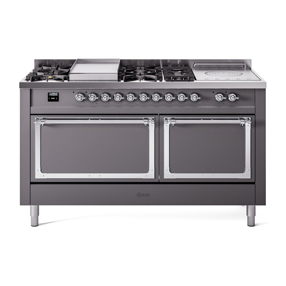 ILVE Nostalgie II Noblesse 60" Dual Fuel Freestanding Range with 7 Sealed Burners + Griddle + French Top with Solid Door - UN60FSQNMP