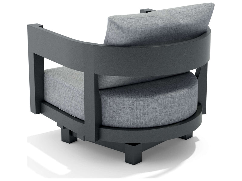 Enjoy the great outdoors in the comfort of your home with the Coronado Swivel Aluminum Armchair. Comfortable and stylish it features a smooth and seamless swivel mechanic that rotates to 360 Degrees of movement holding firmly in place at any position. Machine crafted from an aluminum frame, it’s powder coated and finished in a dark grey color. Shaped to an exquisite round curve design, it’s the perfect material suited to handle the outdoor weathers of rain, hail, or shine. Includes 6” thick deep seating cushion and pillow from All-Weather Sunbrella Fabrics with your choice of color option.
