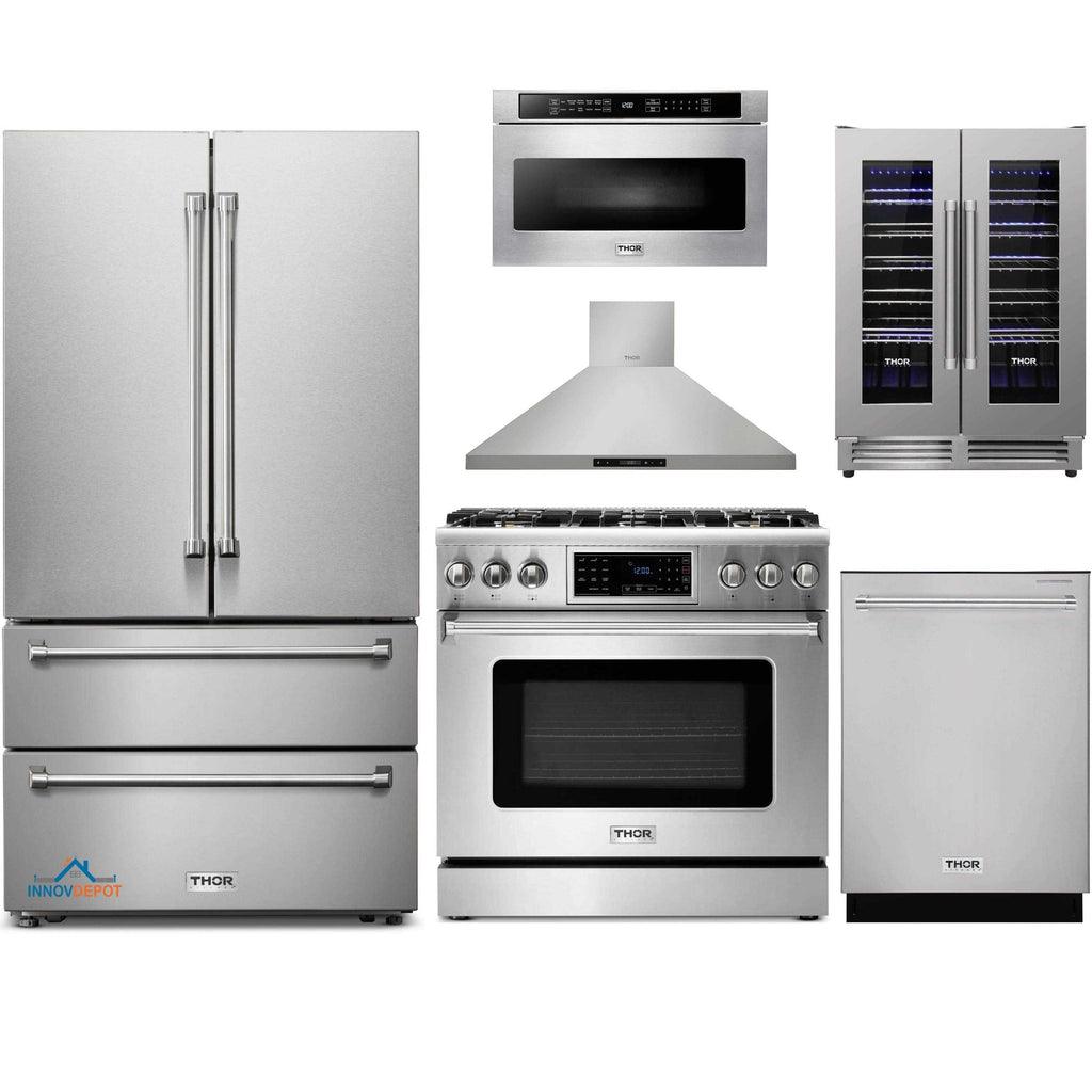 2. Thor Kitchen 36" 22.5 cu. ft Freestanding French Door Refrigerator with Ice Maker in Stainless Steel (TRF3602)