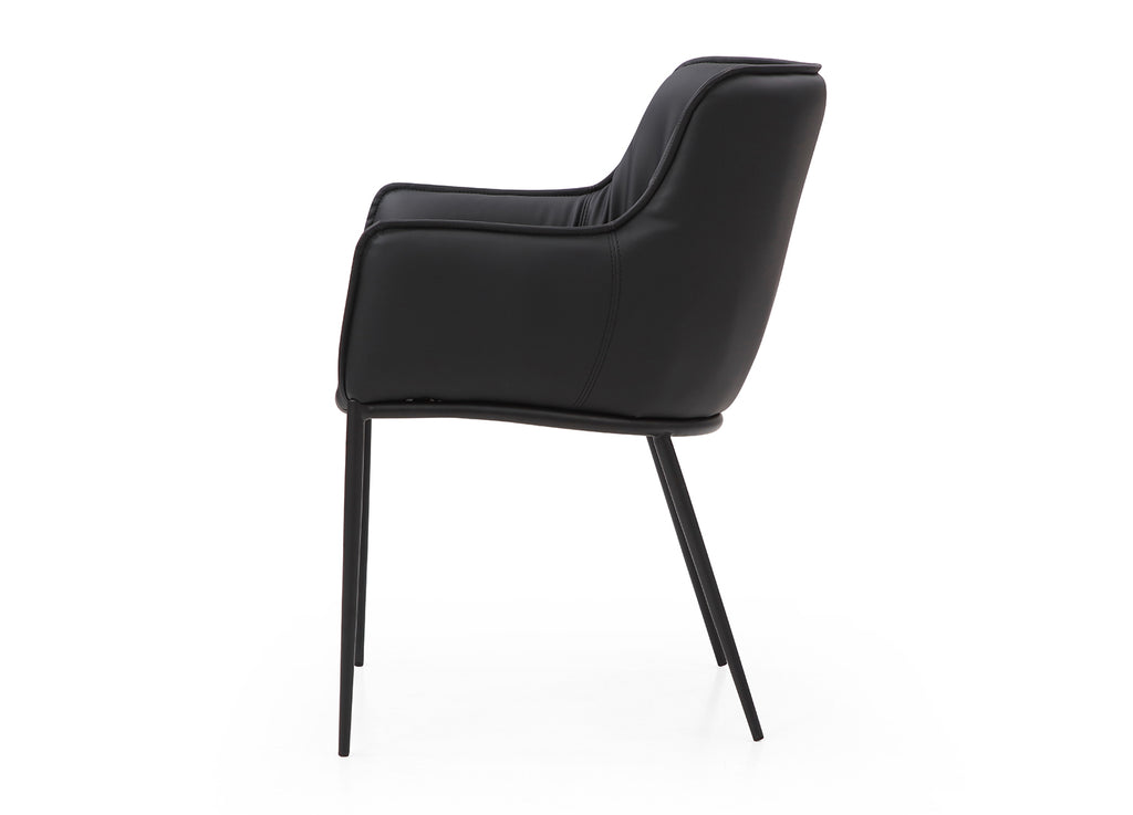 Tiffany Dining Armchair, in Black or Brown Faux Leather, Legs in Black Powder-Coated Steel.
