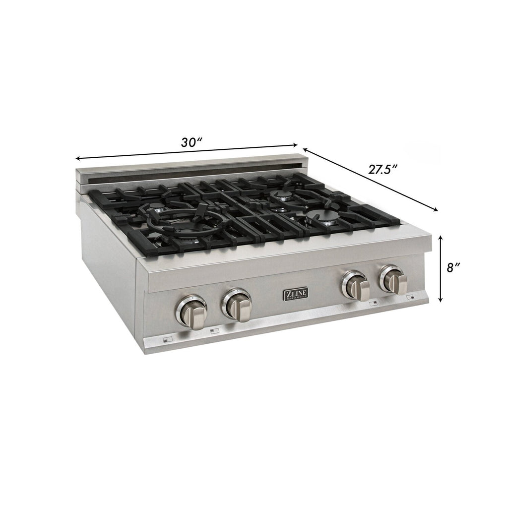 ZLINE 30" Porcelain Rangetop in DuraSnow Stainless Steel with 4 Gas Burners - RTS-30