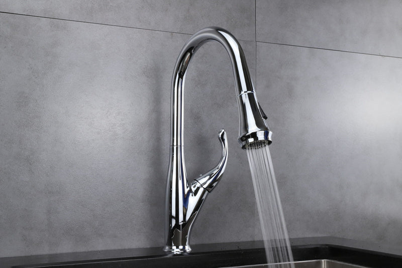 Lexora Garbatella Brass Kitchen Faucet w/ Pull Out Sprayer - Chrome LKFS9011CH