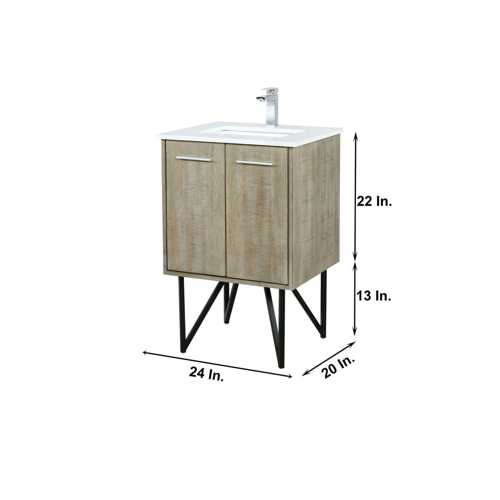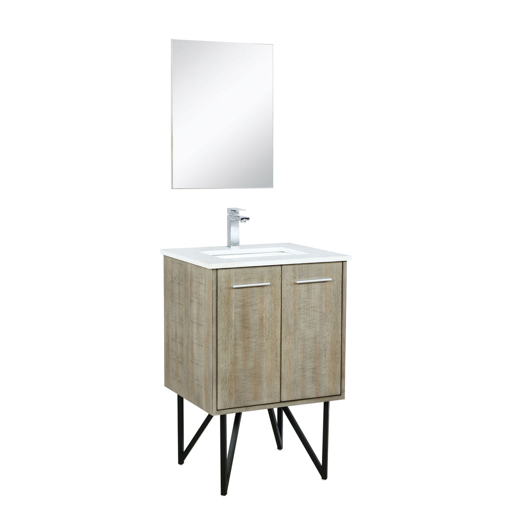 Lexora Lancy 24" Rustic Acacia Bathroom Vanity, White Quartz Top, White Square Sink, Labaro Rose Gold Faucet Set, and 18" Frameless Mirror LLC24SKSOSM18FRG