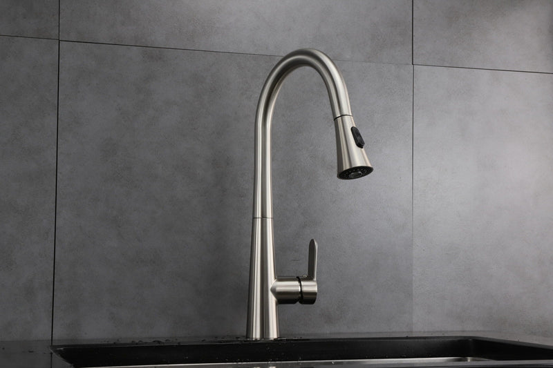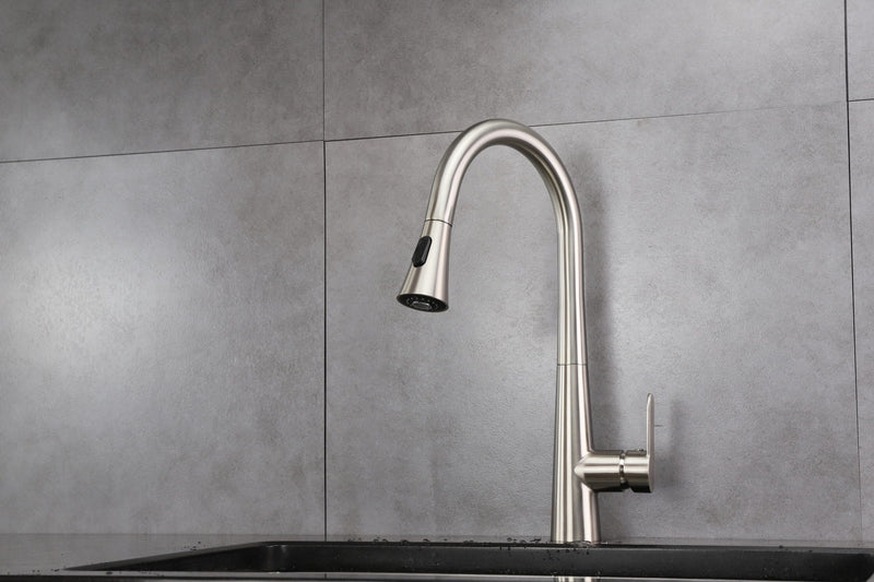Lexora Furio Brass Kitchen Faucet w/ Pull Out Sprayer - Brushed Nickel LKFS7011BN