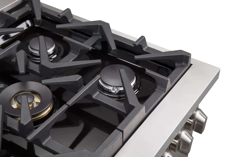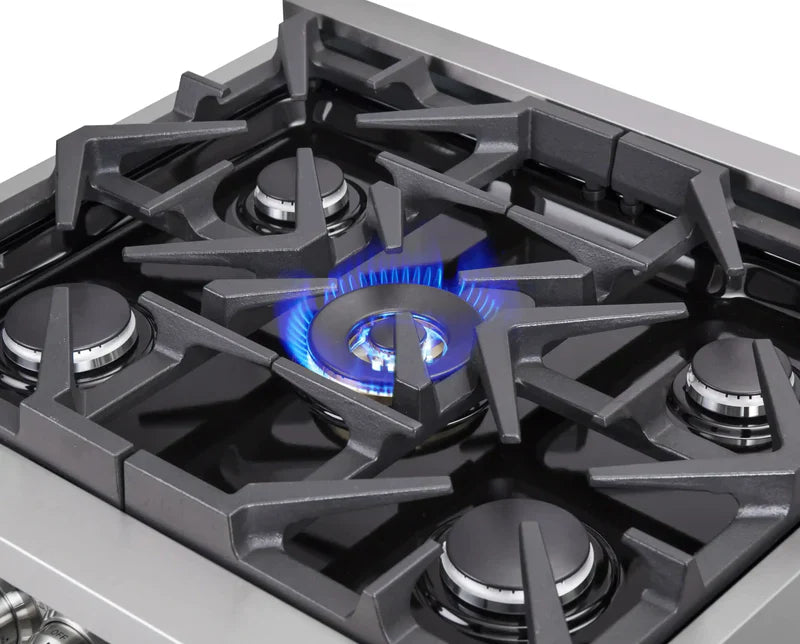 - Heavy-Duty Continuous Cast Iron Grates provide even heat distribution and stable cookware mobility