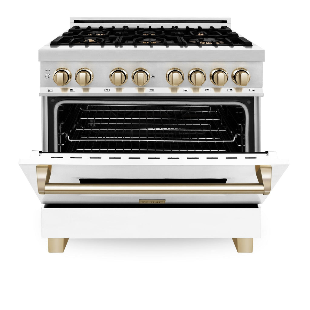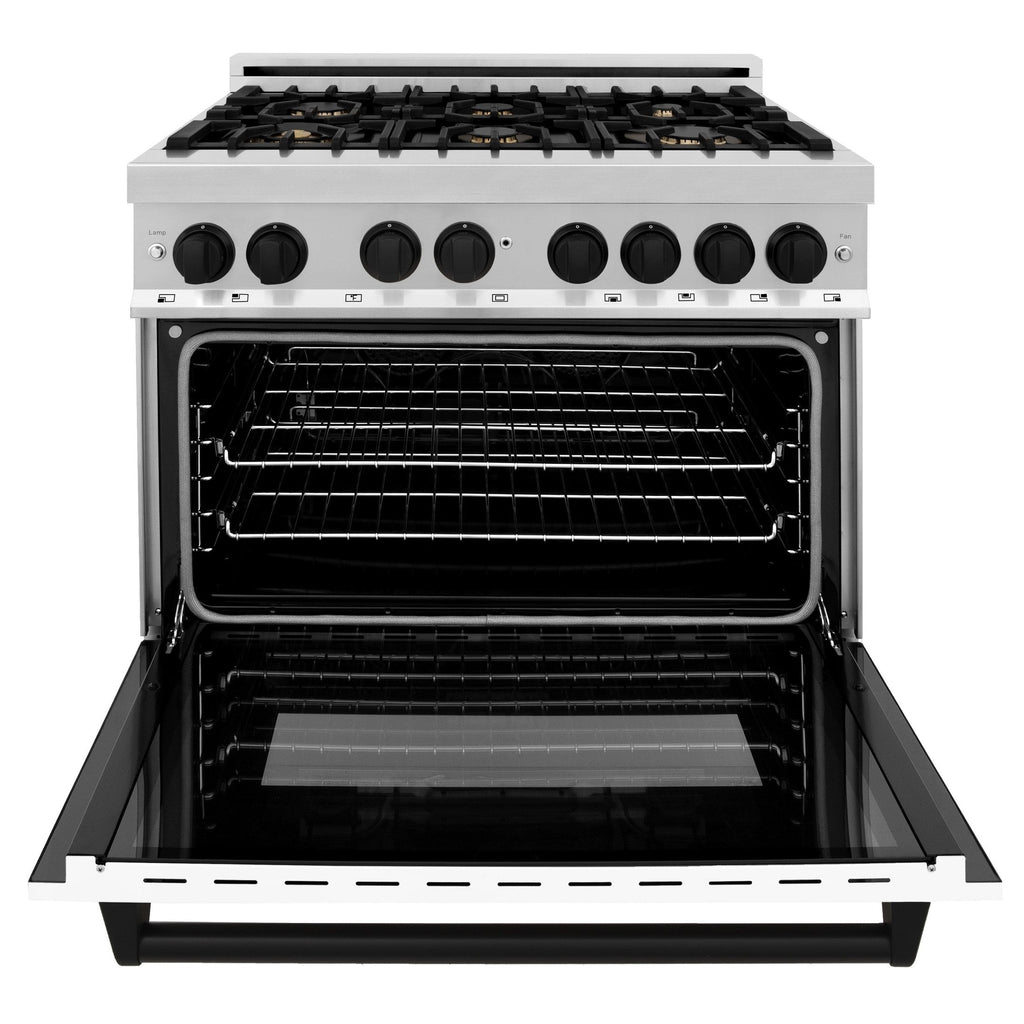 ZLINE Autograph Edition 36" 4.6 cu. ft. Dual Fuel Range with Gas Stove and Electric Oven in Stainless Steel with White Matte Door and Accents - RAZ-WM-36