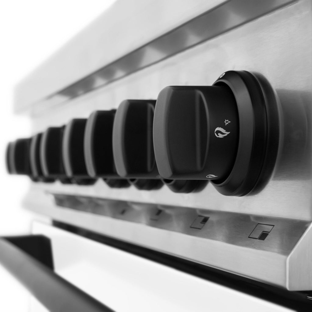 Combining the professional power and functionality of a ZLINE Range with stunning matte black accents, this sophisticated line of professional ranges brings a new meaning of elegance. Create an unforgettable kitchen unique to your style with matte black knobs, handles, legs, and brass burners.