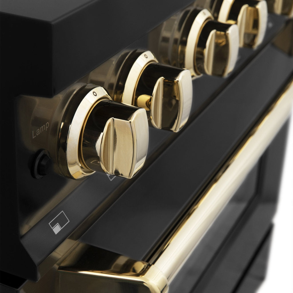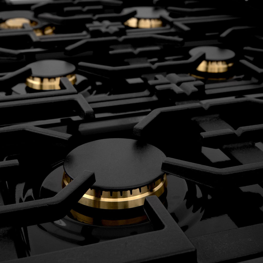 • ZLINE's Italian brass burners give this range an elevated, timeless pop of color while providing enhanced cooking benefits such as superior heat retention and even flame distribution.