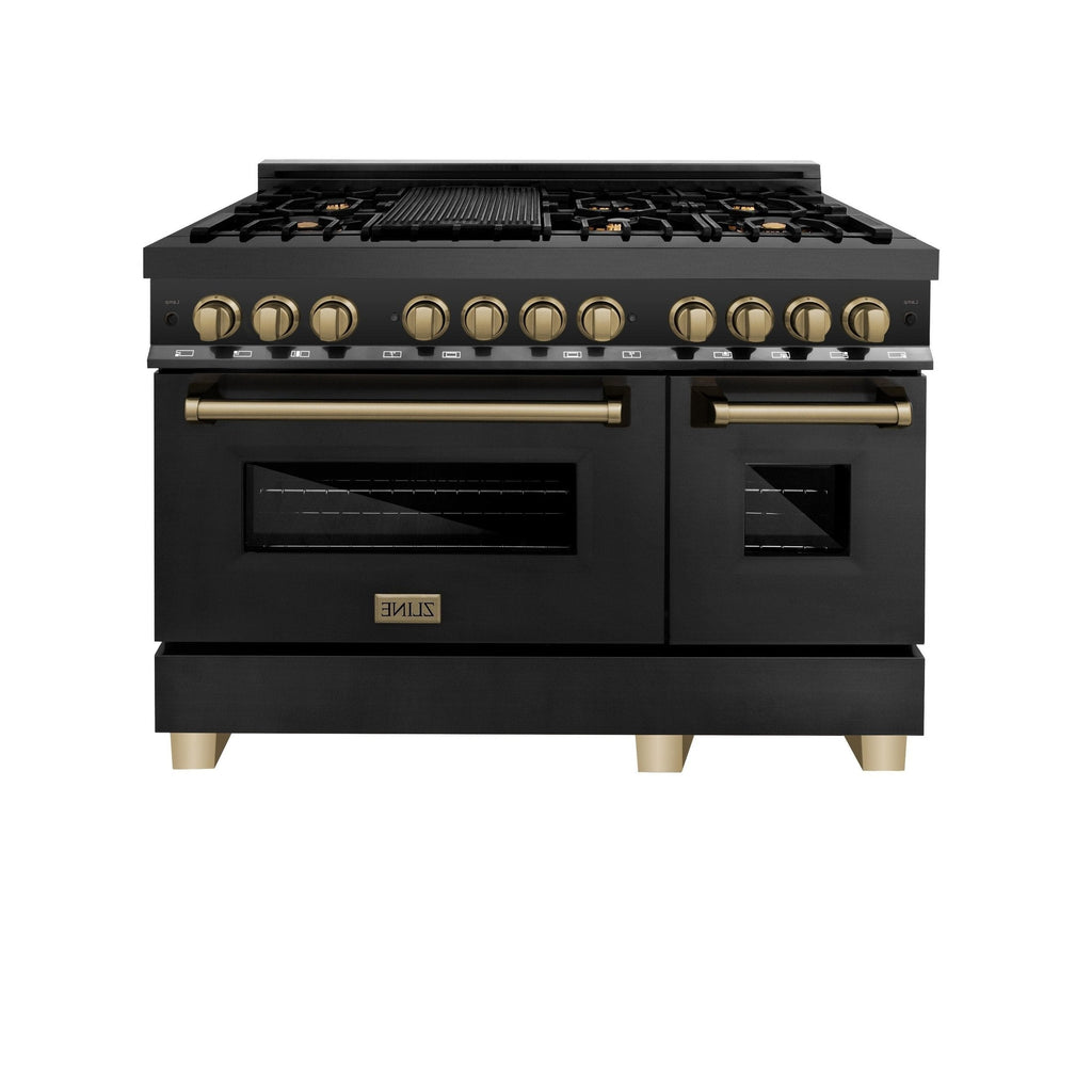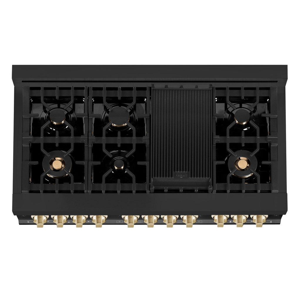 ZLINE Autograph Edition 48" 6.0 cu. ft. Dual Fuel Range with Gas Stove and Electric Oven in Black Stainless Steel with Accents - RABZ-48