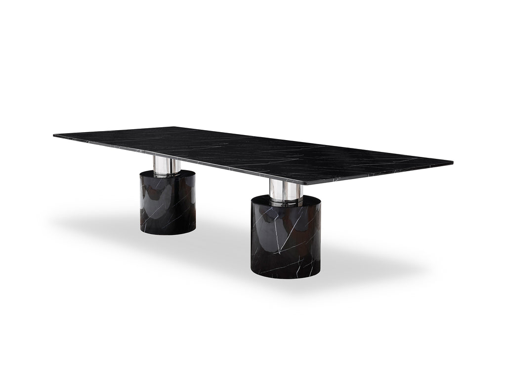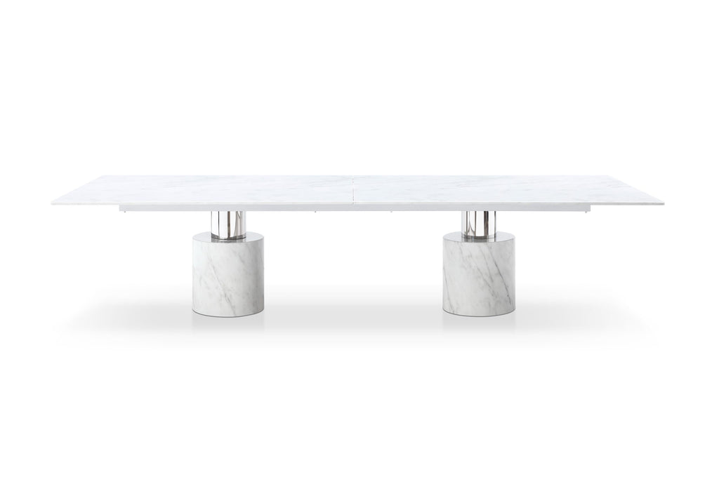 Geneva Extra Large Dining Table, Polished Gold or Silver Finish Cylinder