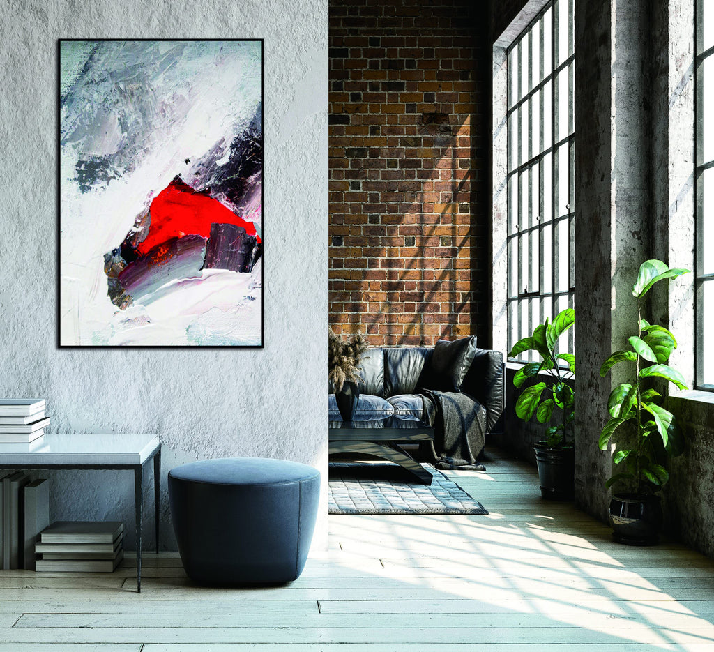The Rojo canvas features an abstract design in shades of red, black, and white, a stunning piece that would give your space a bold touch.