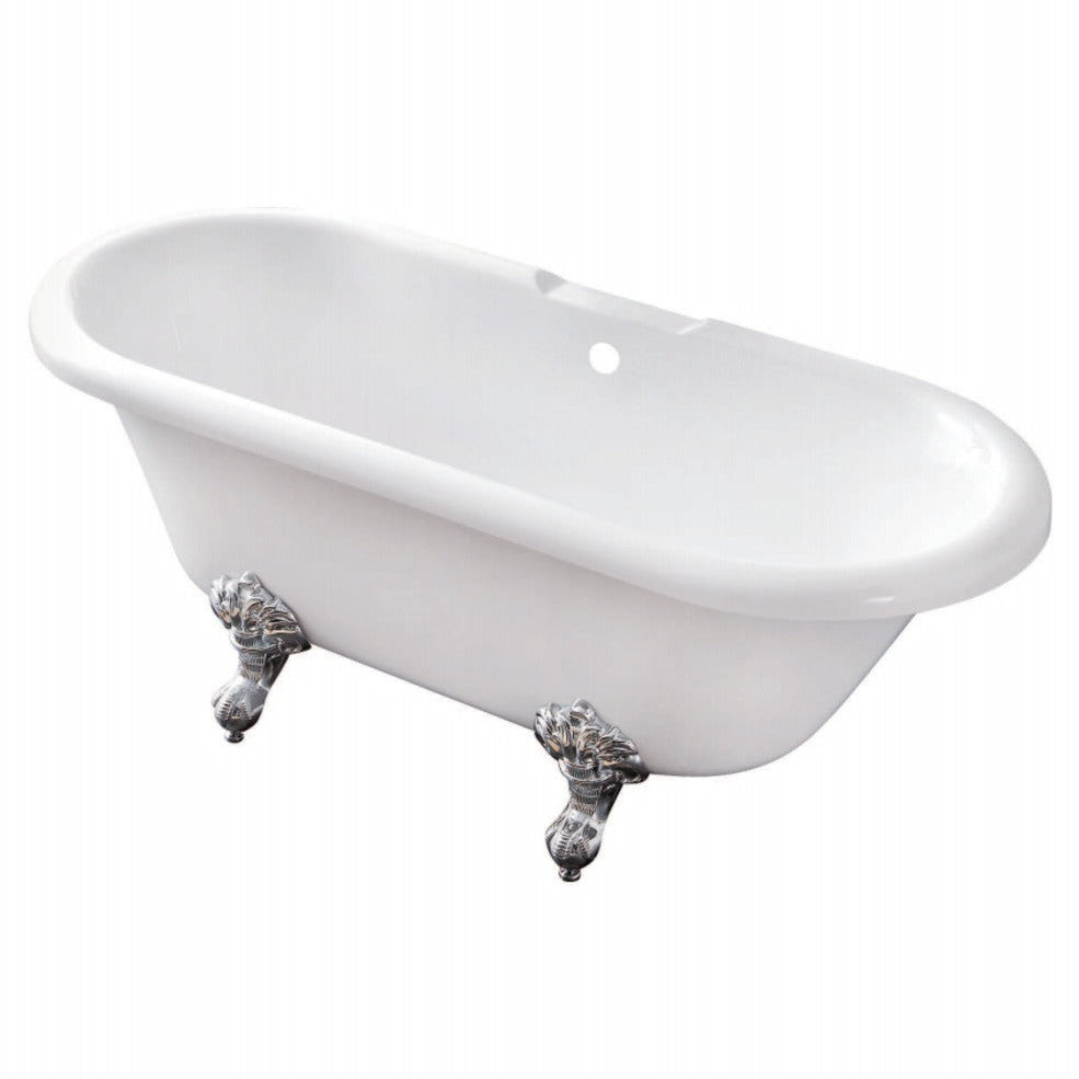 Kingston Brass Aqua Eden 67-Inch Acrylic Double Ended Clawfoot Tub (No Faucet Drillings), White/Polished Chrome VTDS672924H1