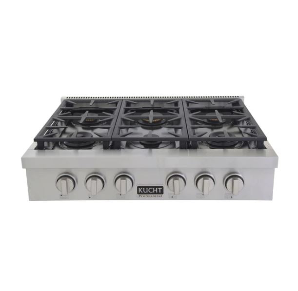 - Kucht 36 in. Professional 6 Burner Gas Stovetop in Stainless Steel with Accents KFX369T