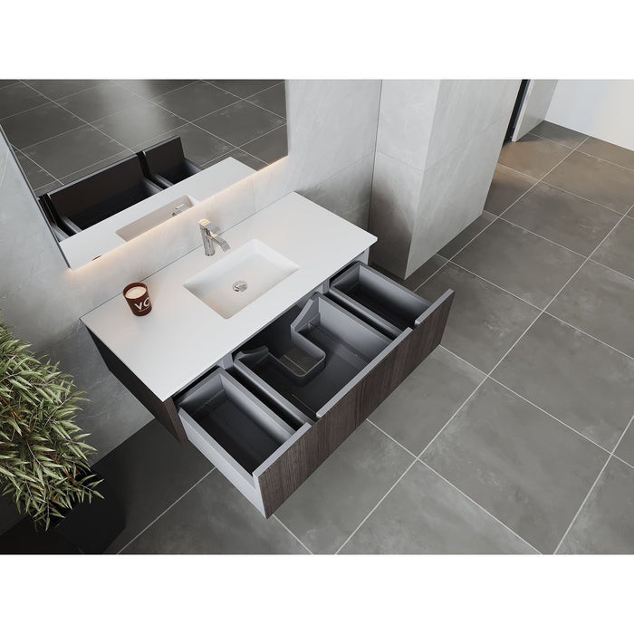 Laviva Legno 48" Carbon Oak Bathroom Vanity with Matte White VIVA Stone Solid Surface Countertop 313LGN-48CR-MW