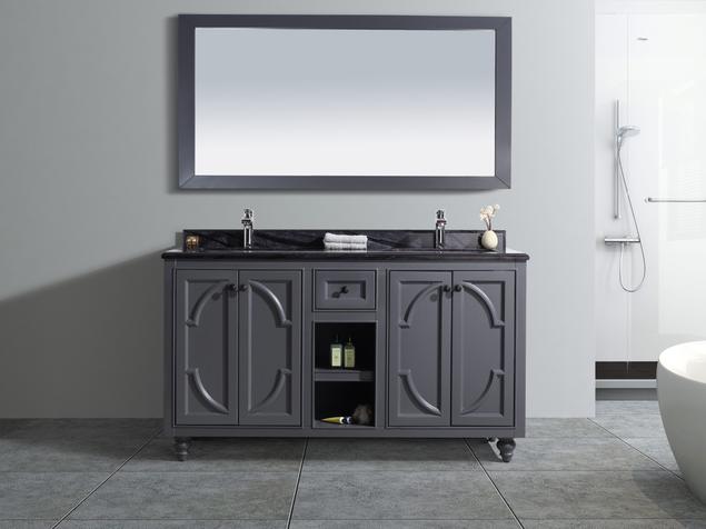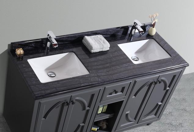 Laviva Odyssey 60" Maple Grey Double Sink Bathroom Vanity with Black Wood Marble Countertop 313613-60G-BW