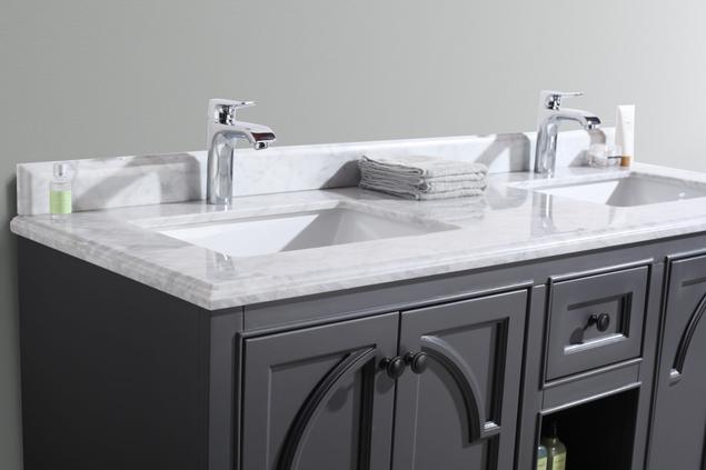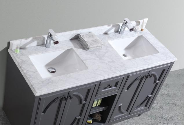 Laviva Odyssey 60" Maple Grey Double Sink Bathroom Vanity with White Carrara Marble Countertop 313613-60G-WC