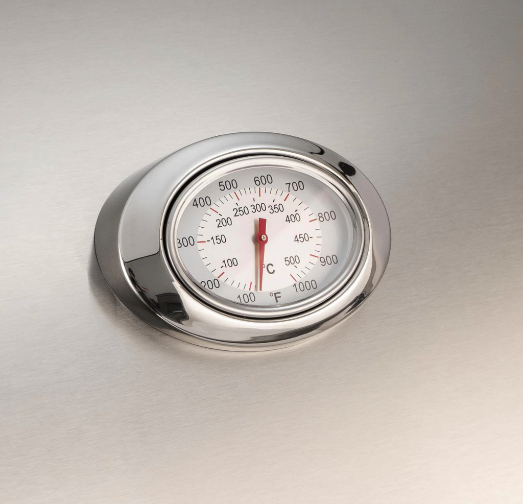 The double-walled, spring-assisted hood opens 90 degrees for easier access and more efficient exhaust. It features an integrated analog thermometer with an angled bezel for easier viewing. Inside, this grill features two cast stainless steel E-burners, made with 1/4-inch thick walls and precision porting, and a left-side infrared burner that combine for 63,000 BTUs. Reliable hot surface ignition always lights your burners where others might fail.