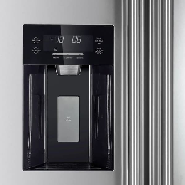 • Built-In Water & Ice Dispenser: Touchscreen control with options for cubed ice, crushed ice, and chilled water