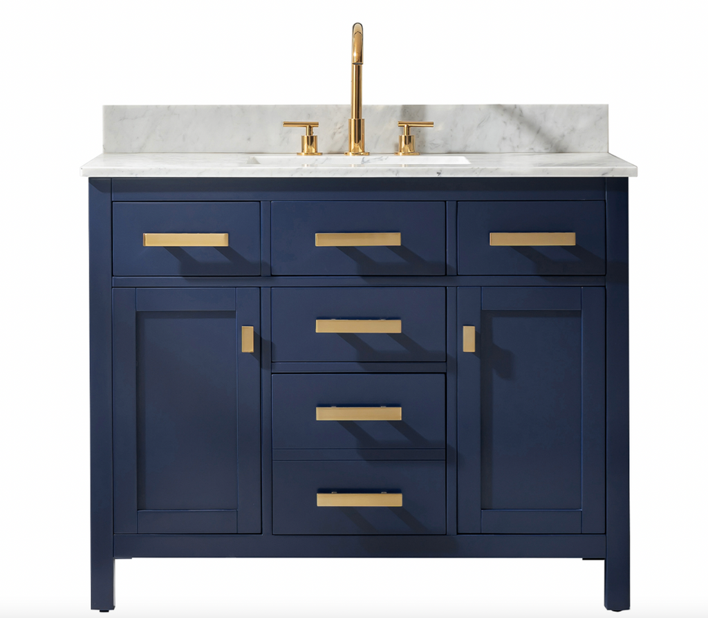 All Valentino vanity cabinets are constructed from high-grade solid birch hardwood, plywood, and MDF, engineered to prevent warping. Paired with an 1-inch thick seamless quartz countertop and backsplash. Soft-closing doors and drawers provide smooth and quiet operations, with brushed metal hardware providing the perfect finishing touch. Other fine details include a white porcelain sink with overflow, dovetail joint drawer construction, pre-drilled holes to accommodate 8-inch widespread faucets, and a multi-layer paint finish on the cabinet, to provide beauty and durability for years to come.