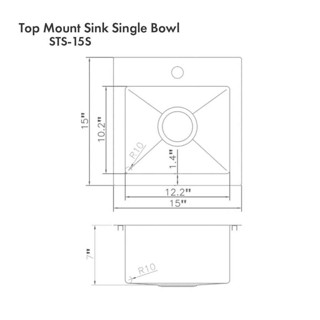 ZLINE 15" Donner Topmount Single Bowl Bar Kitchen Sink - STS-15
