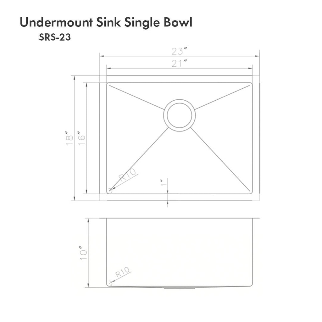 ZLINE 23" Meribel Undermount Single Bowl Kitchen Sink with Bottom Grid - SRS-23