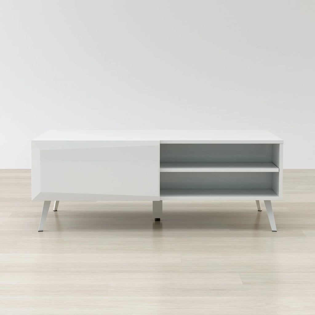 Enjoy your favorite cup of brew in the comfort of your home living room with this modern contemporary coffee table. The Altus Coffee Table made of engineered wood and finished in a white gloss laminate is a sleek and stylish coffee table featuring ample storage space to place your magazines, laptop, books and items. The perfect complement and look for any modern decor living room, this table integrates appearance with practical use.