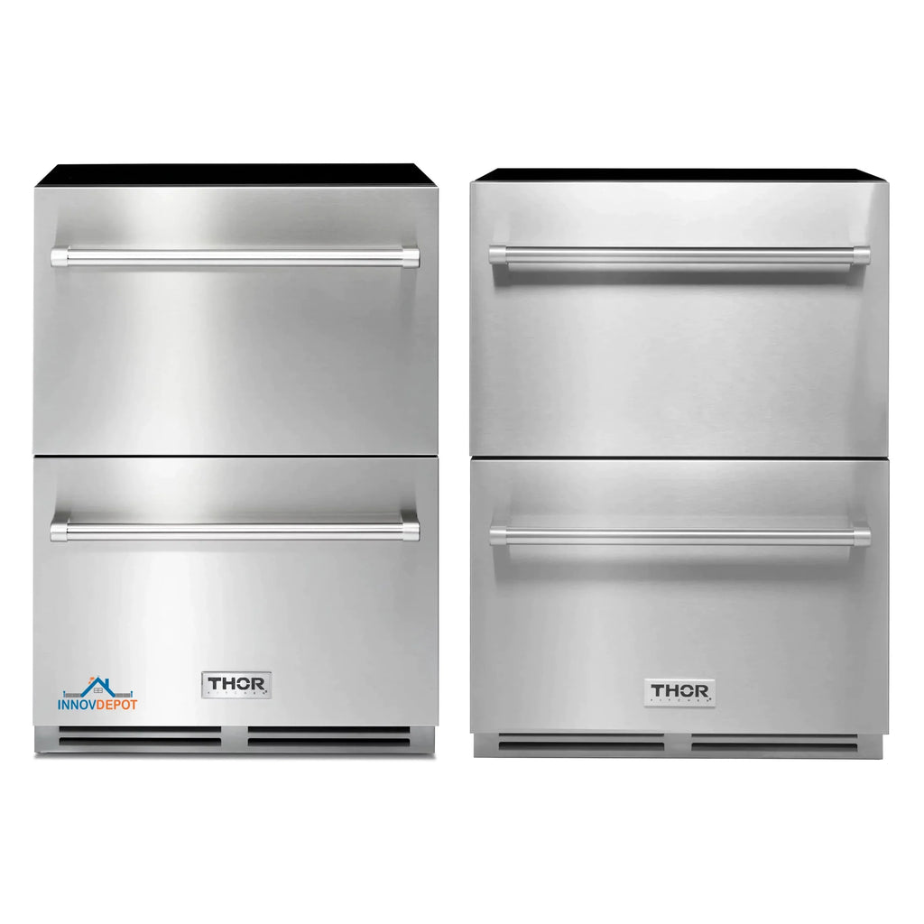 Thor Kitchen 2-Piece Appliance Package - 24-Inch Double Drawer Refrigerator and Freezer Drawer in Stainless Steel