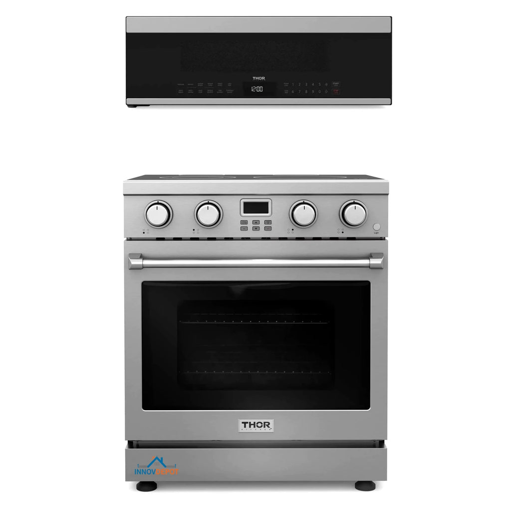 Thor Kitchen 2-Piece Appliance Package - 30-Inch Electric Range and Over-the-Range Microwave & Vent Hood in Stainless Steel