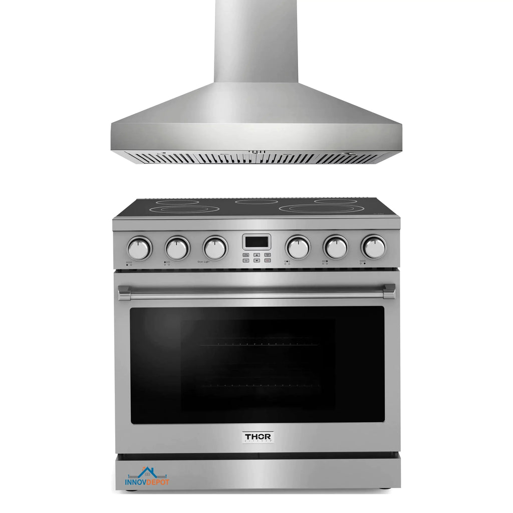 Thor Kitchen 2-Piece Appliance Package - 36-Inch Electric Range and Pro-Style Wall Mount Range Hood in Stainless Steel