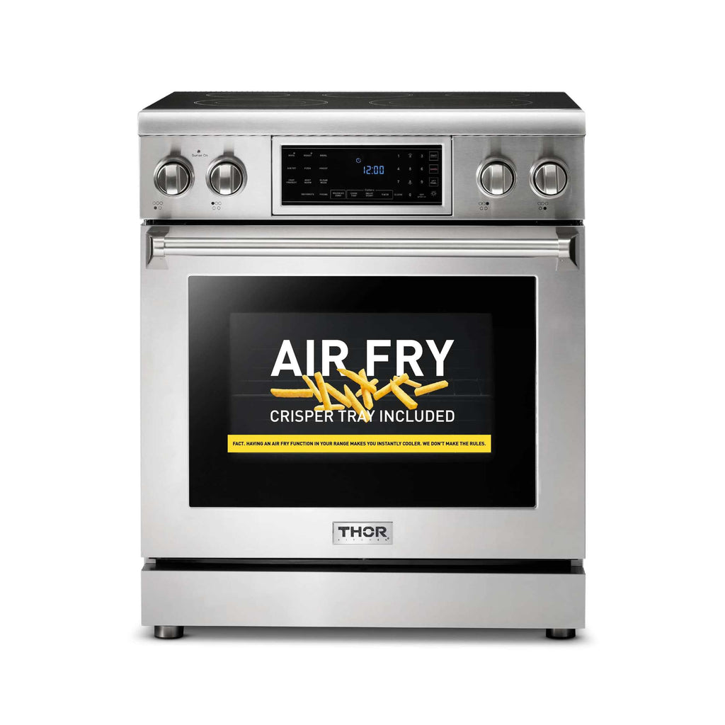 Thor Kitchen 30" Electric Range with 4.55 Cu. Ft. Self-Cleaning Oven, Air Fryer, and Tilt Panel in Stainless Steel (TRE3001)