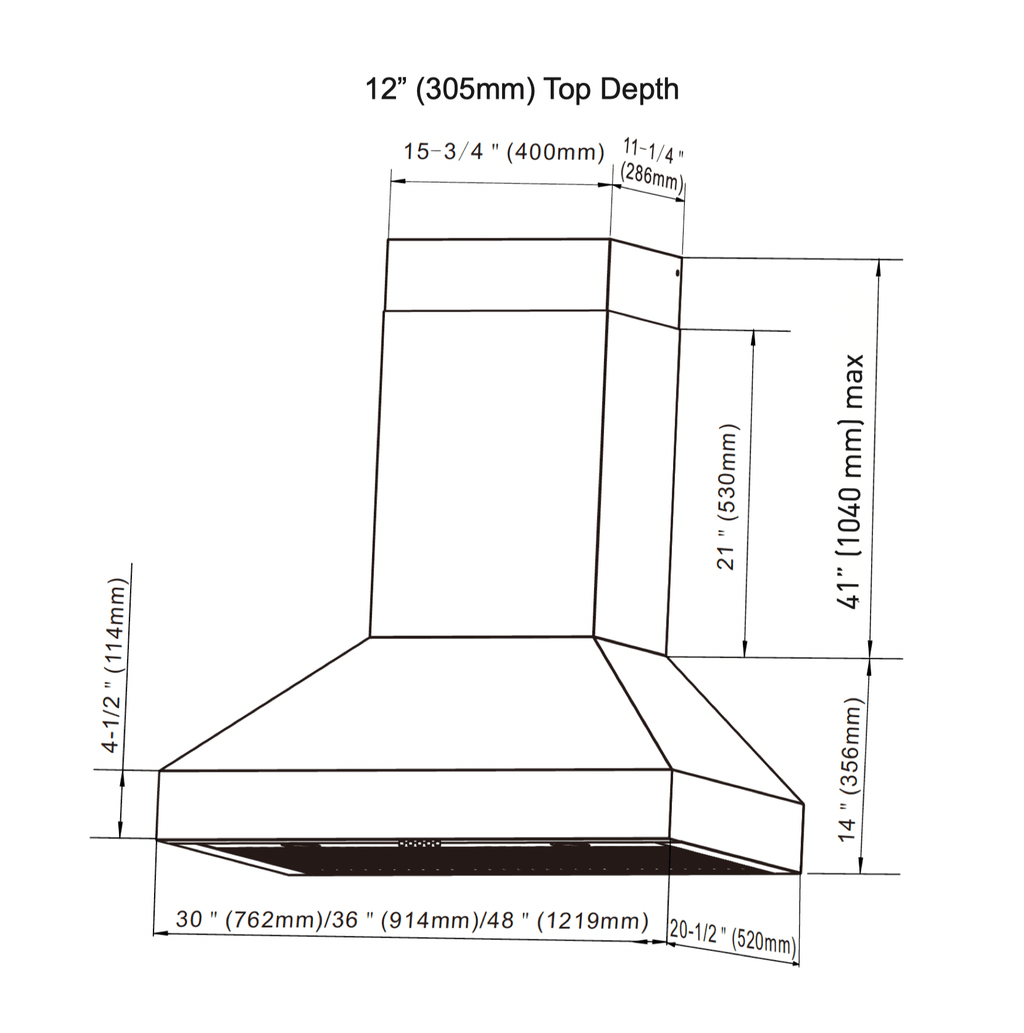 Thor Kitchen 48” Professional Wall Mount Pyramid Range Hood with 800 CFM Motor in Stainless Steel (TRH48P)