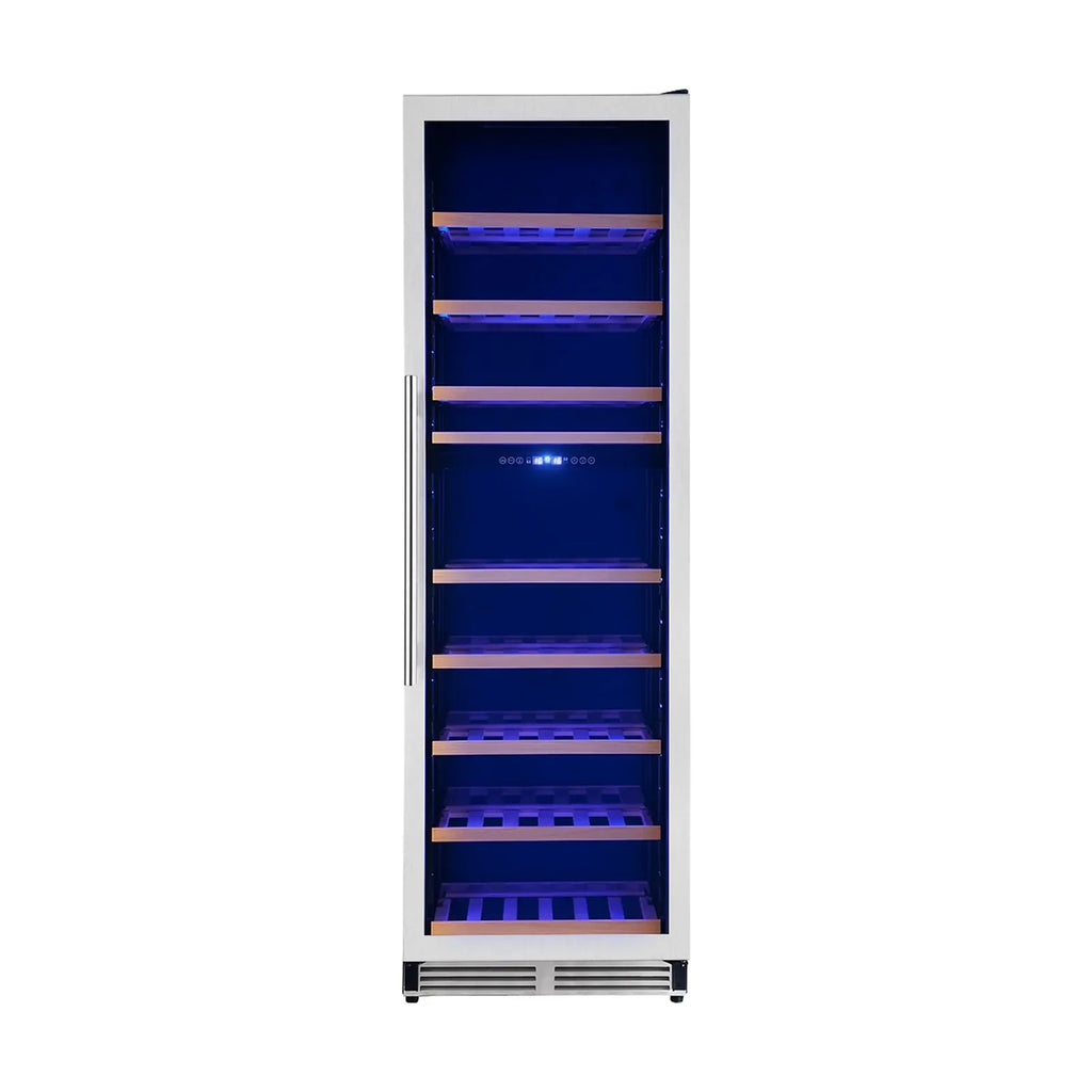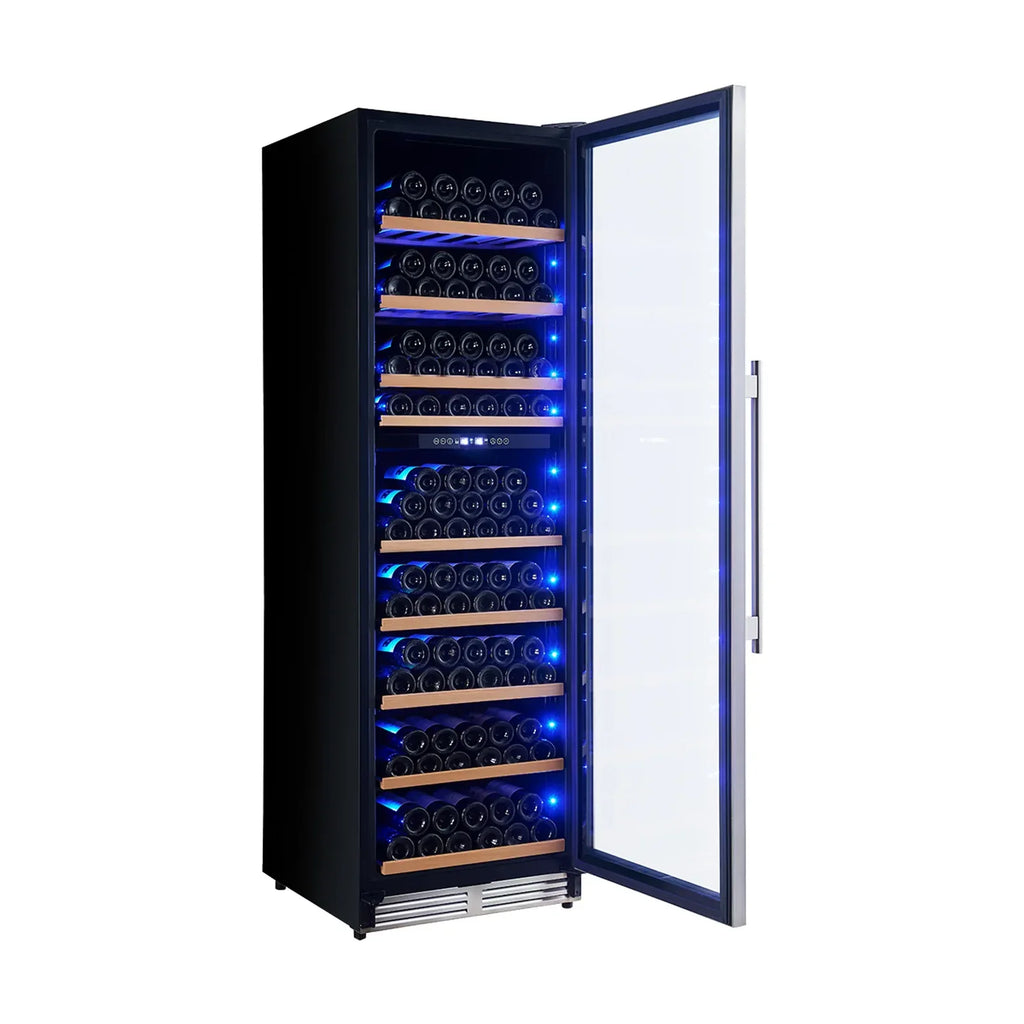 - Store reds and whites in two separate cooling zones, maintaining precise temperatures for optimal serving conditions. Seamless stainless steel door frame with triple-layer anti-UV glass prevents condensation for a clear view.