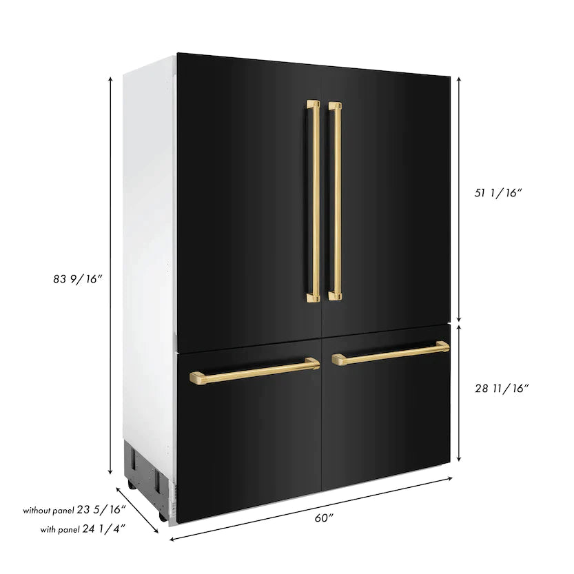 ZLINE 60" Autograph Edition 32.2 cu. ft. Built-in 4-Door French Door Refrigerator with Internal Water and Ice Dispenser in Black Stainless Steel with Gold Accents (RBIVZ-BS-60-G)