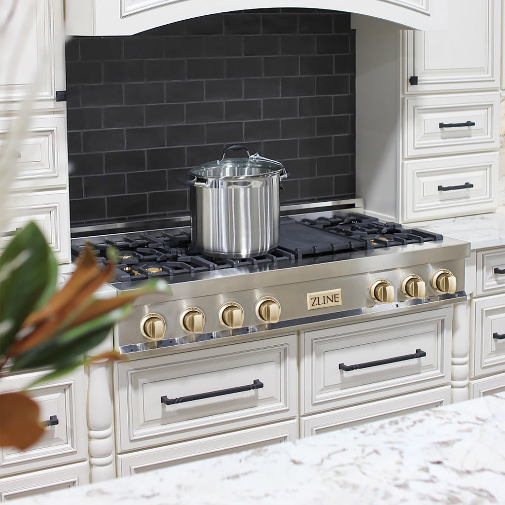 ZLINE Autograph Edition 48" Porcelain Rangetop with 7 Gas Burners in Stainless Steel With Accents - RTZ-48