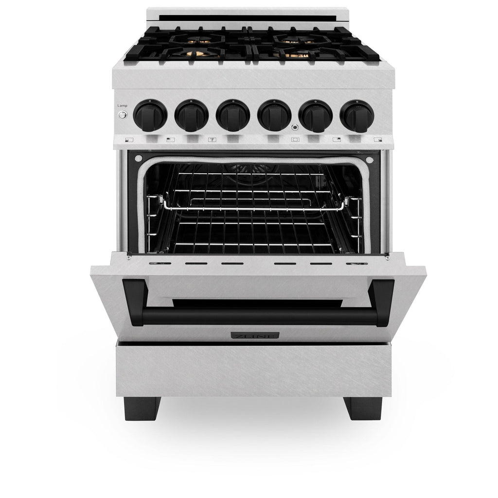 ZLINE Autograph Edition 24" 2.8 cu. ft. Dual Fuel Range with Gas Stove and Electric Oven in DuraSnow Stainless Steel with Accents - RASZ-SN-24
