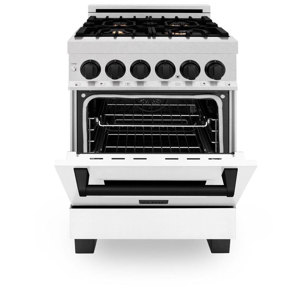 ZLINE Autograph Edition 24" 2.8 cu. ft. Dual Fuel Range with Gas Stove and Electric Oven in DuraSnow Stainless Steel with White Matte Door and Accents - RASZ-WM-24