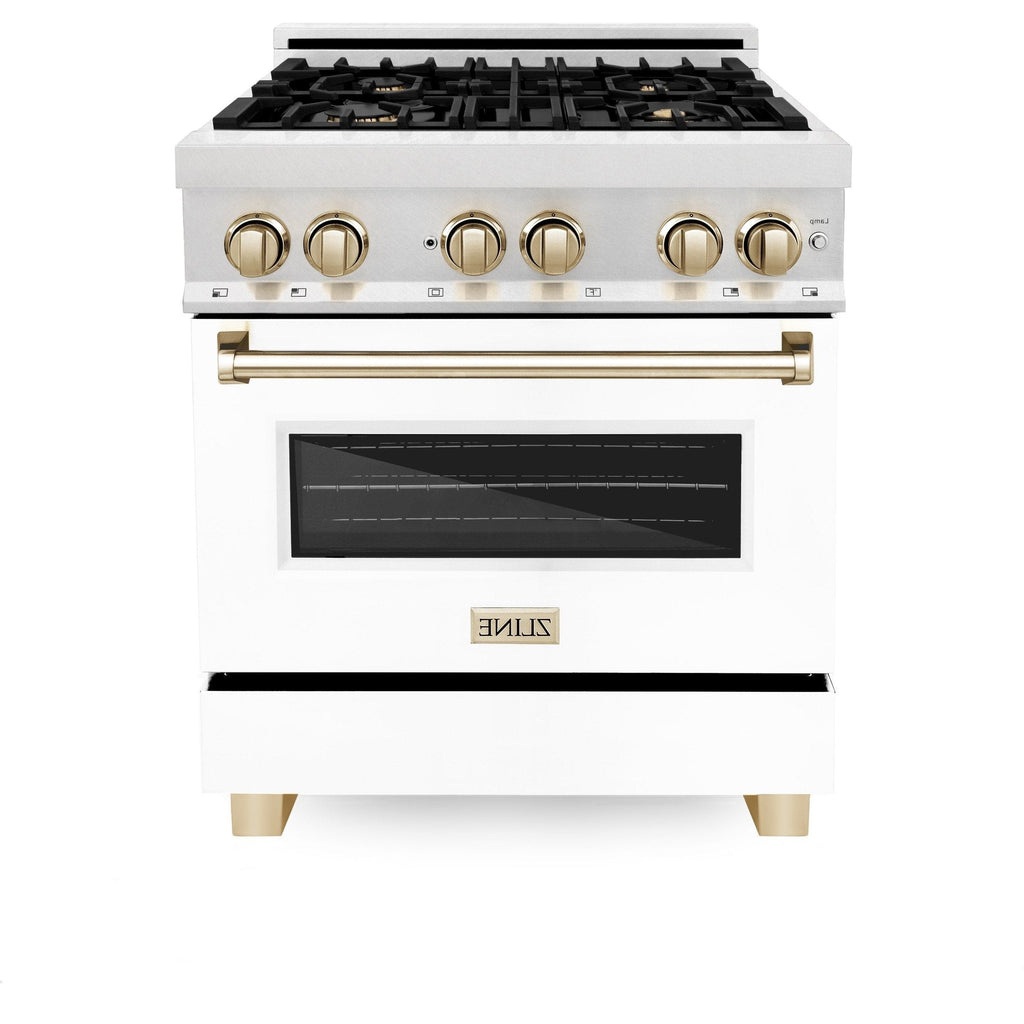 ZLINE Autograph Edition 30" 4.0 cu. ft. Dual Fuel Range with Gas Stove and Electric Oven in DuraSnow Stainless Steel with White Matte Door and Accents - RASZ-WM-30