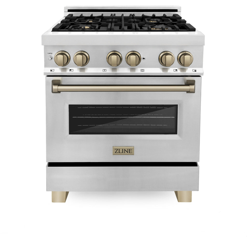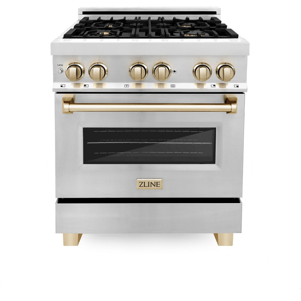 ZLINE Autograph Edition 30" 4.0 cu. ft. Dual Fuel Range with Gas Stove and Electric Oven in Stainless Steel with Accents - RAZ-30
