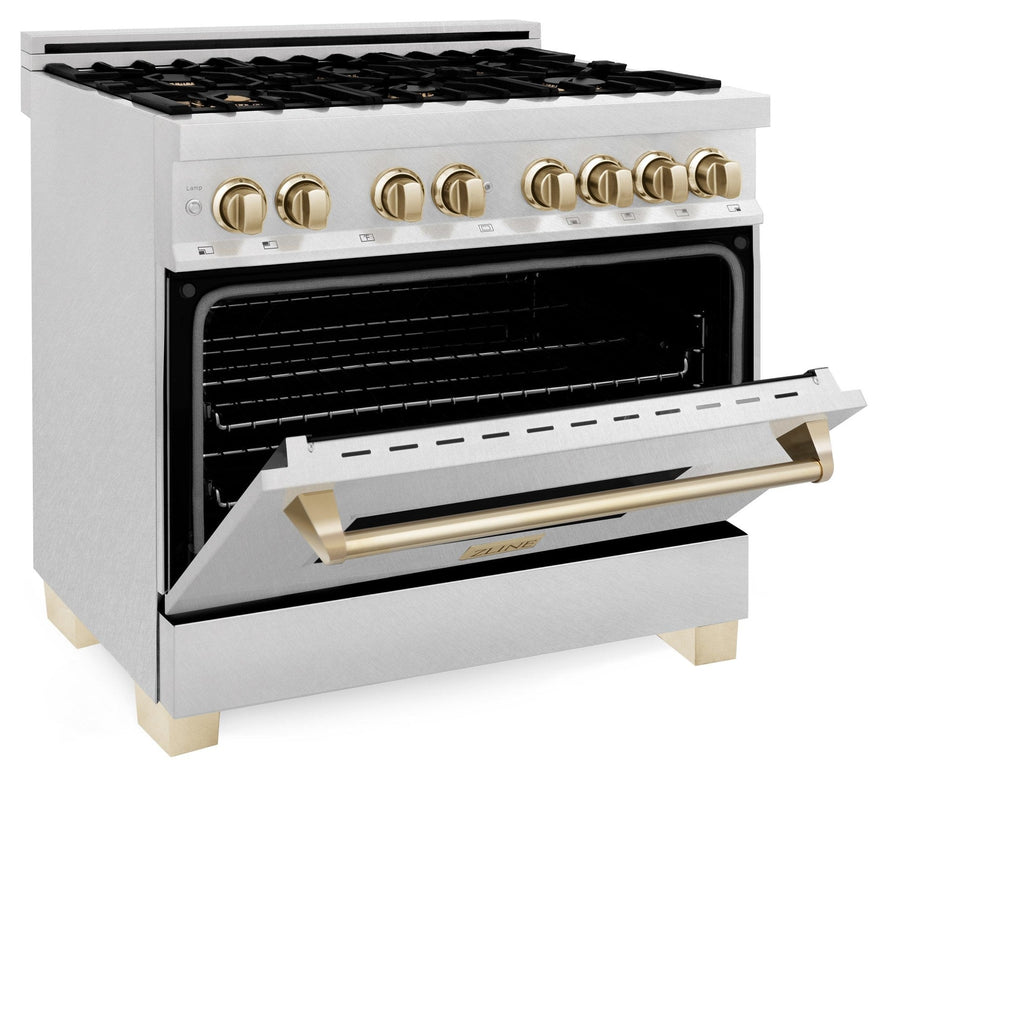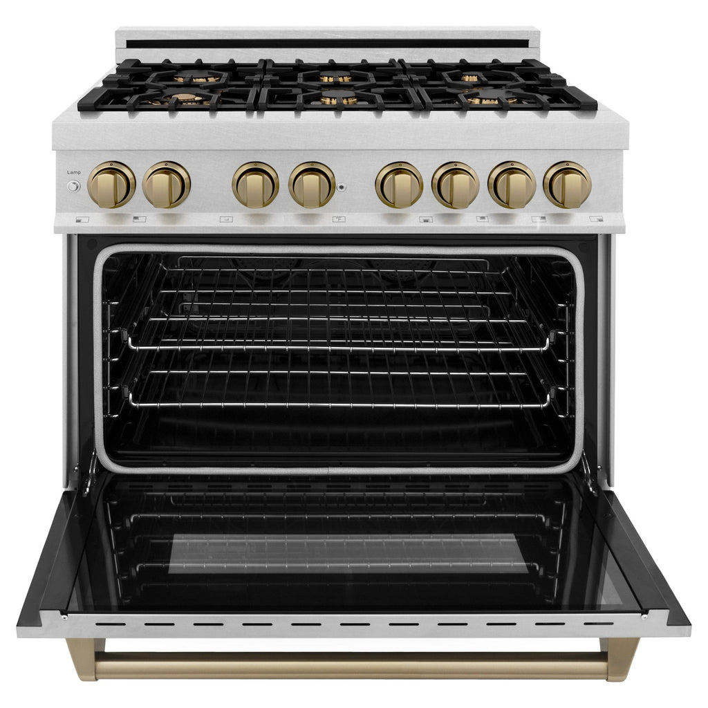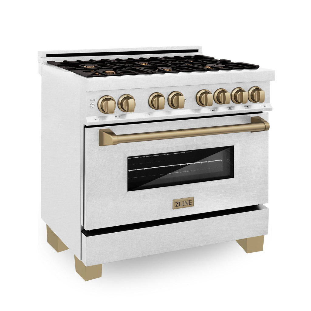 ZLINE Autograph Edition 36" 4.6 cu. ft. Dual Fuel Range with Gas Stove and Electric Oven in DuraSnow Stainless Steel with Accents - RASZ-SN-36