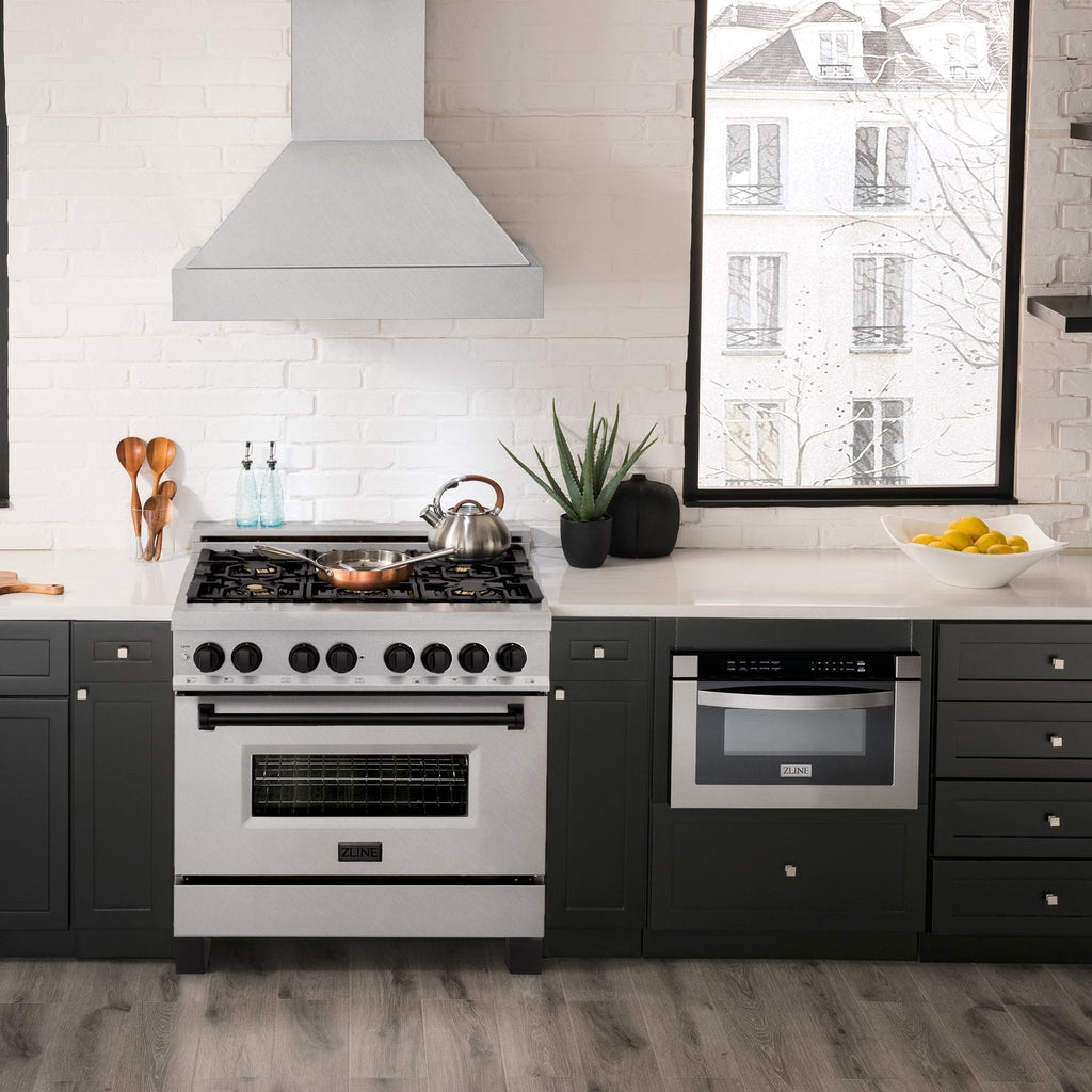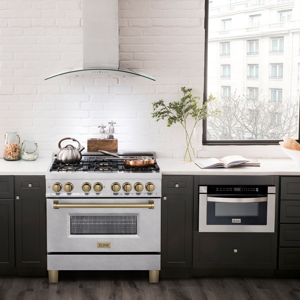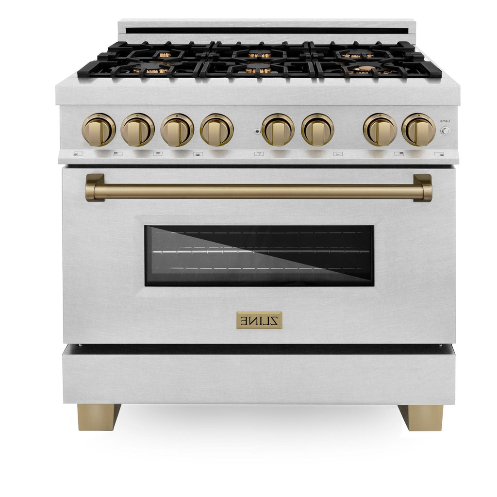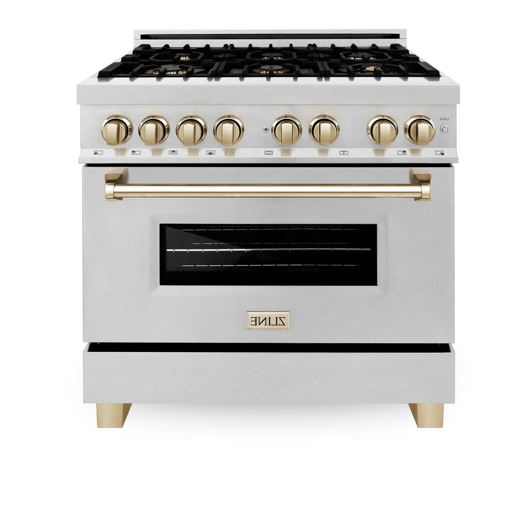 ZLINE Autograph Edition 36" 4.6 cu. ft. Dual Fuel Range with Gas Stove and Electric Oven in DuraSnow Stainless Steel with Accents - RASZ-SN-36