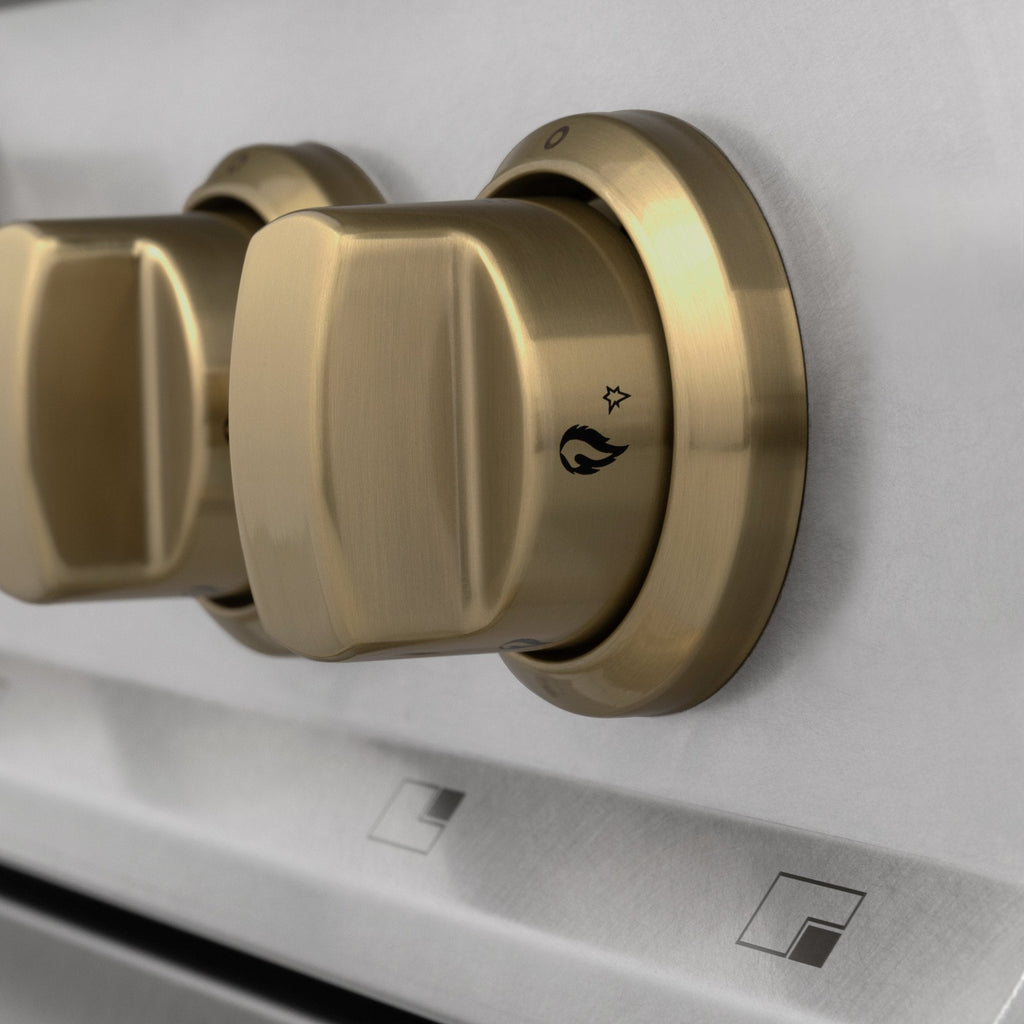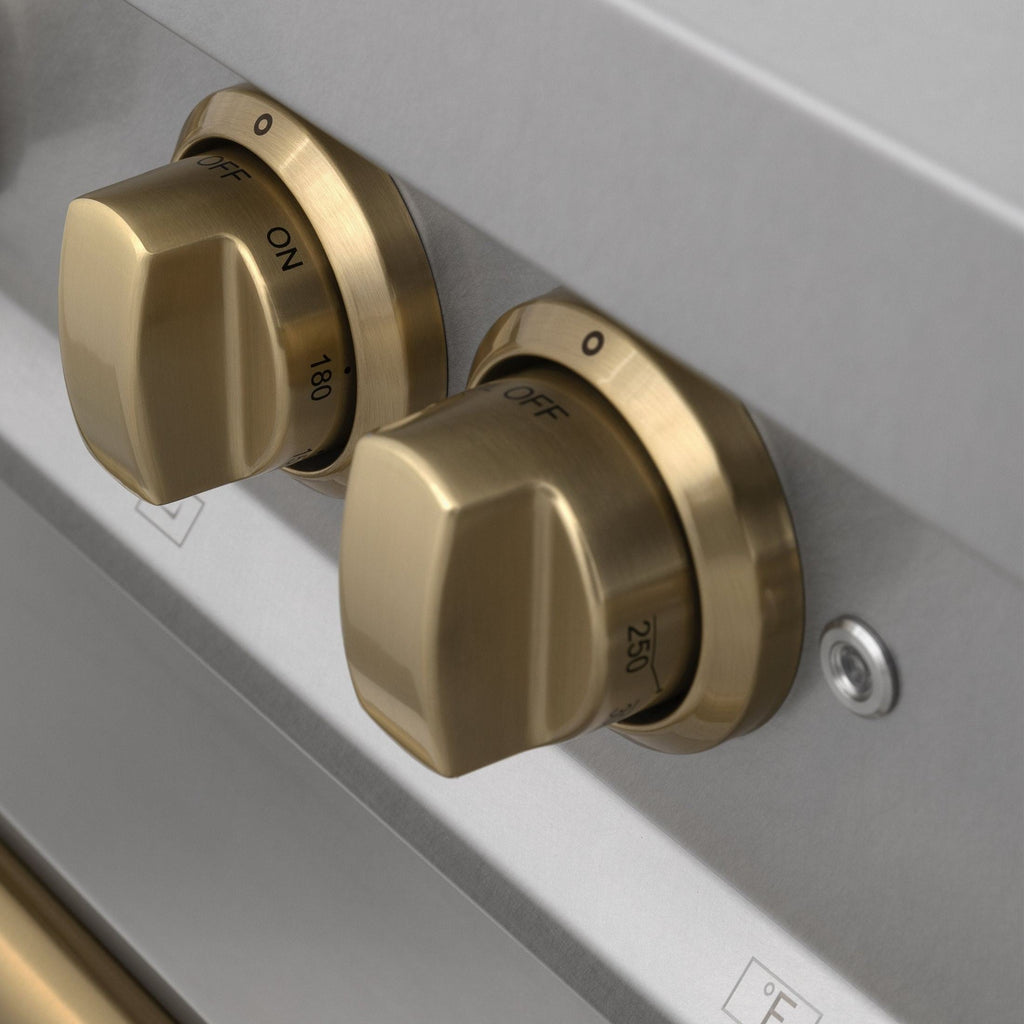 Combining the professional power and functionality of a ZLINE Range with stunning champagne bronze accents, this sophisticated line of professional ranges brings a new meaning of elegance. Create an unforgettable kitchen unique to your style with champagne bronze knobs, handles, legs, and brass burners. Choose from a variety of finishes from ZLINE's Autograph Edition, including: Champagne Bronze, Matte Black and Gold. The beauty of the Autograph Edition is infinite, just like the beauty found in Lake Tahoe and the Sierra Nevada Landscapes. From our home to yours, enjoy a luxurious experience with every Autograph Edition Dual Fuel Range assembled to order in the US.