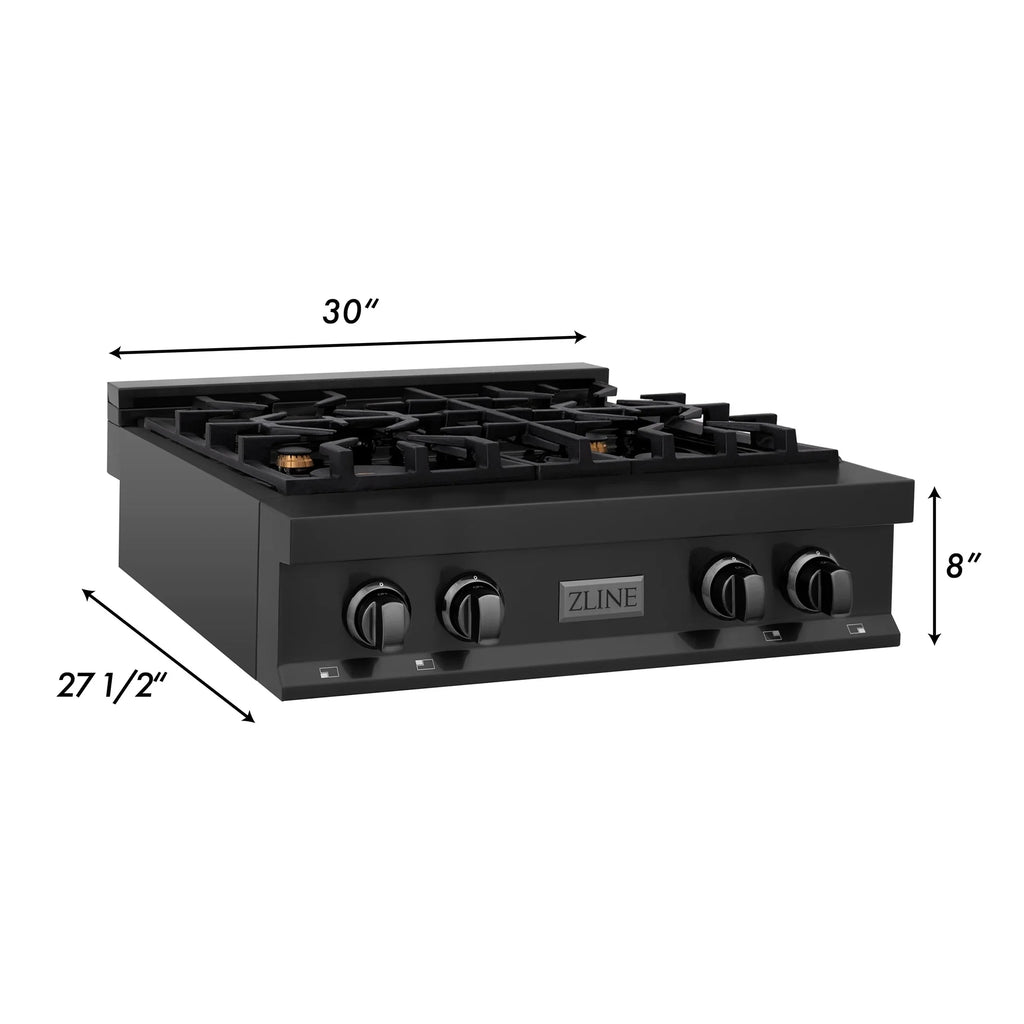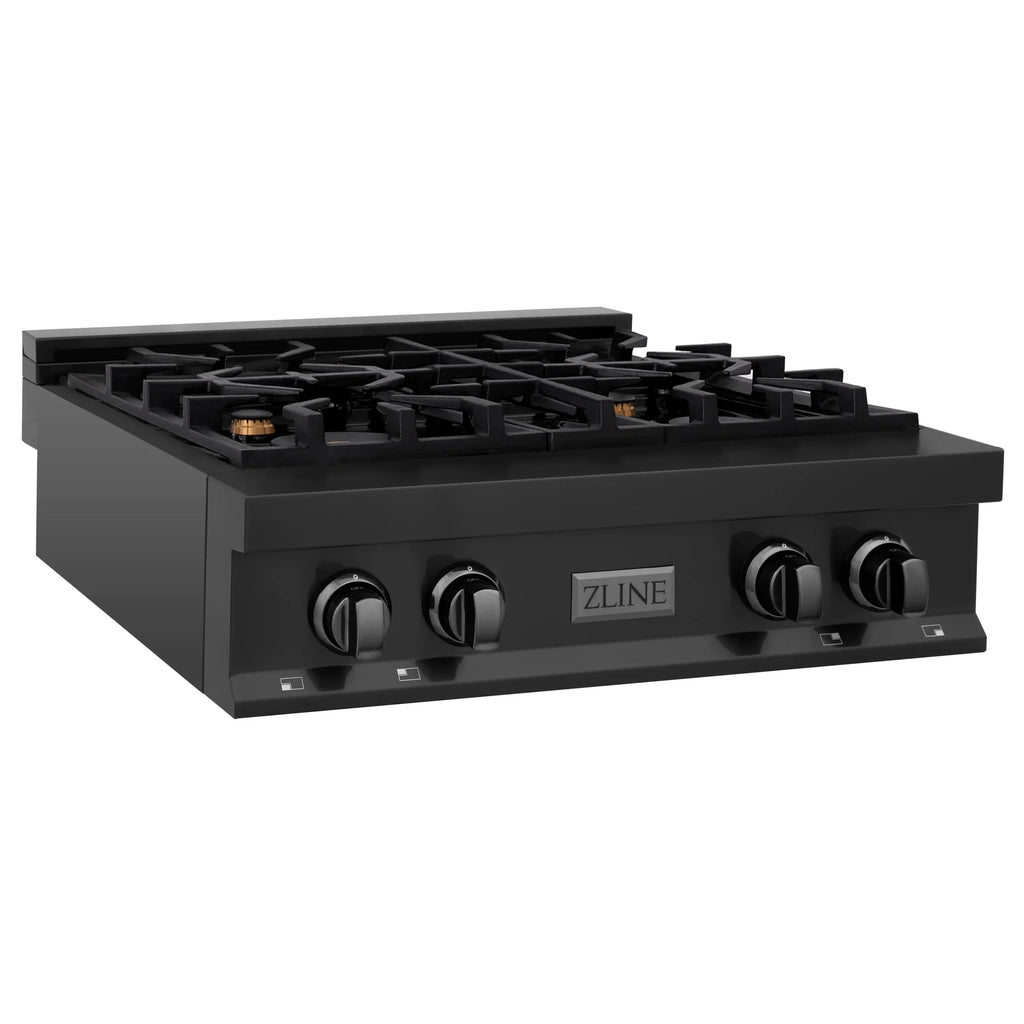 ZLINE 30" Porcelain Gas Stovetop in Black Stainless Steel with 4 Gas Brass Burners - RTB-BR-30