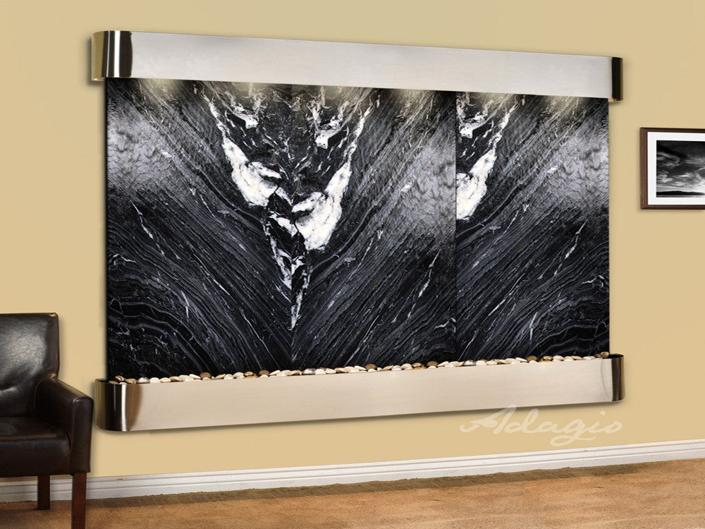 The Solitude River Waterfall features 3 stones side-by-side for a large, wall-mounted water feature for your home or office.