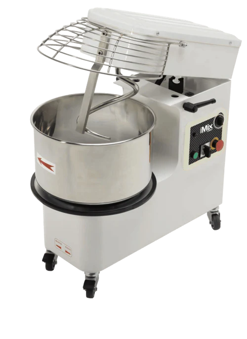Moretti Forni Spiral Dough Mixer, 2-speed, 83 lbs dough. 55 lbs of flour. 42qts bowl stainless steel bowl with lift cage, raising head and removed bowl, timer, geared motor chain drive system, stainless steel frame, swivel casters with brakes,  3HP, 220v/60/3-ph, UL, NSF, Made in Italy