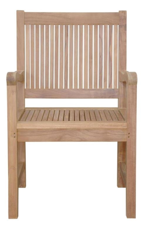 Rockford Dining Armchair expertly crafted from teak wood and finished with water based sealer ensures outdoor fitness and quality that lasts. Features expertly hand crafted engravings and tapered footing gives it a distinct design and look. Add the Rockford Rectangular Dining Table with similar styles and crafted engravings to complete the set and look.