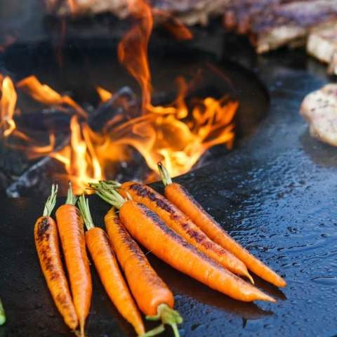 Note: When your grill arrives, the cooktop will be silver (unseasoned). It will develop the dark color shown in the images once it has been seasoned and used several times.