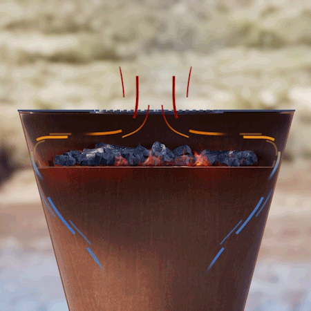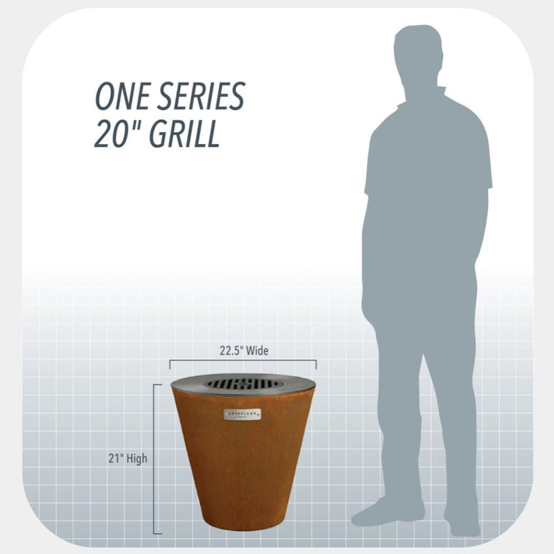 The new One Series Arteflame design is based on the same concept as the Classic Arteflame 40" grill but in a smaller format. The smaller design is fueled by charcoal or wood chunks and crafted in two pieces - a 1/4" carbon steel cooktop and a US CORTEN steel base made to last a lifetime.