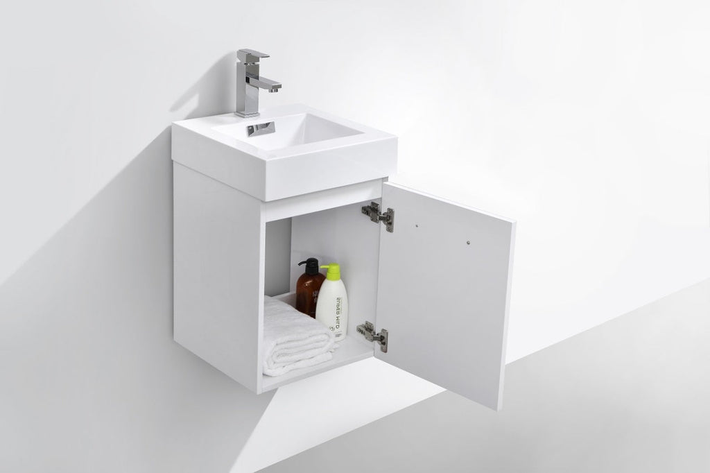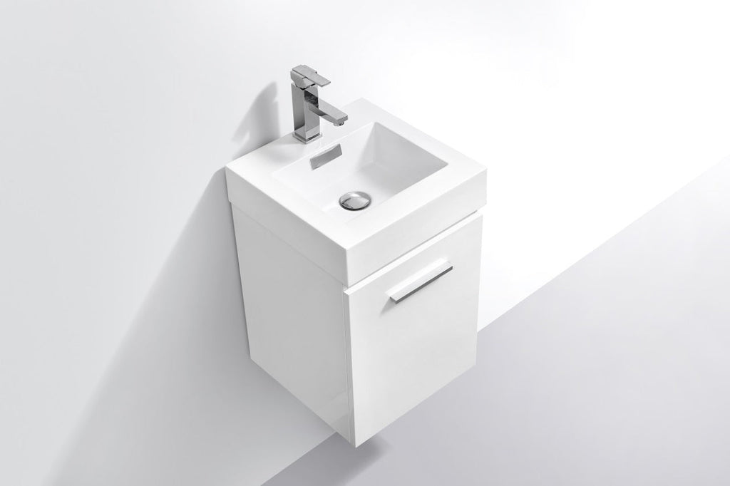 KubeBath Bliss 16" High Gloss White Wall Mount Modern Bathroom Vanity BSL16-GW