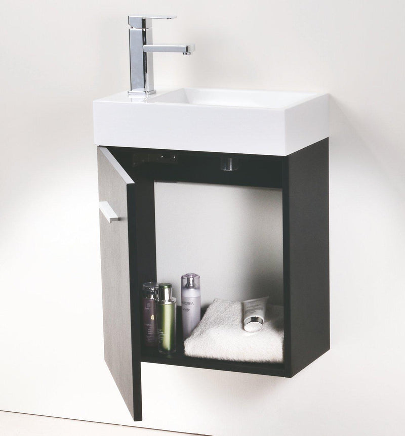 Innovative design and economical in size makes this vanity ideal for any smaller location. Available in various finishes ensures that regardless the color scheme at hand, anyone is sure to complete their space with guaranteed cutting contemporary chicness.