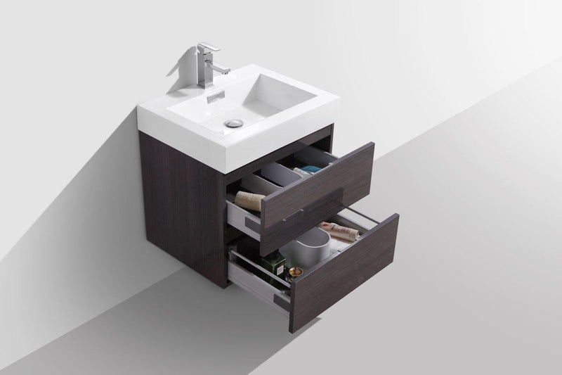 Bliss 24 in. Wall Mount Modern Bathroom Vanity - High Gloss Gray Oak